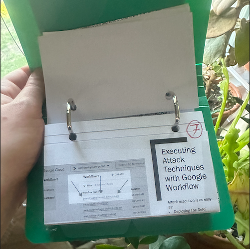 I print each slide to scale, cut them out, and tape them onto a notecard. If I'm feeling extravagant, I might even print in color—though sometimes, using color feels like tempting fate, almost guaranteeing last-minute slide revisions.